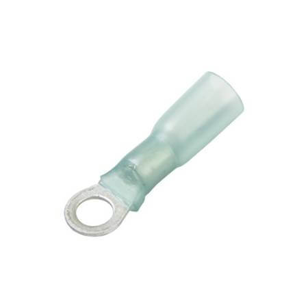 The Del City NSPA KS114-38 Heat Shrink & Crimp Ring Terminal is designed for secure and durable electrical connections in automotive and marine applications. This terminal features a 3/8″ stud size and is suitable for wire gauges ranging from 16 to 14 AWG. The blue insulation is made from heat shrink polyolefin, providing excellent protection against environmental factors and ensuring a reliable connection.